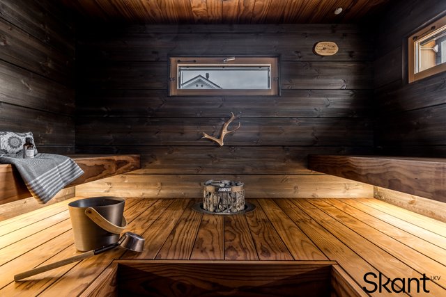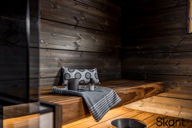 - Saunan seinät, katto ja lauteet radiata mänty. Lauteissa tunnelmallinen led-valaistus.