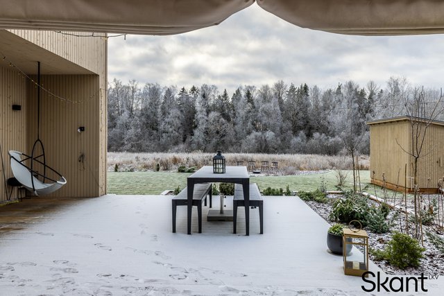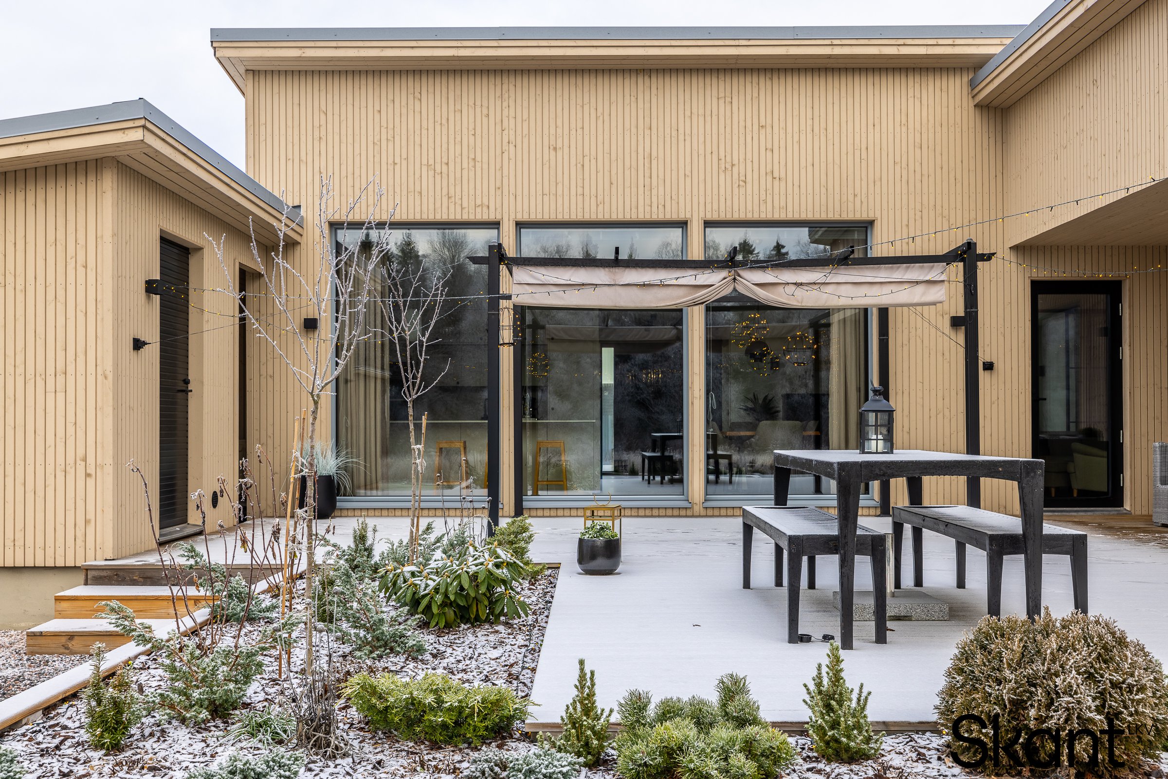 Arkea helpottavat erillinen wc, kodinhoitohuone sekä sen yhteydessä oleva arkieteinen omalla sisäänkäynnillä. Lämmin ulkovarasto tarjoaa loistavat tilat kausitavaroiden säilytykseen. Autoilijan lumisia aamuja helpottaa pihan autokatos, johon on valmius sähköauton latausasemalle. Piha on helppohoitoinen ja viimeistelty kauniilla istutuksilla.