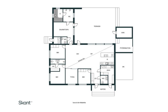- Pinta-ala ei ole tarkistusmitattu ja todellinen pinta-ala voi olla suurempi tai pienempi, kuin ilmoitettu