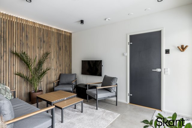 - Takkahuone sijaitsee saunatilojen kanssa samassa siivessä.