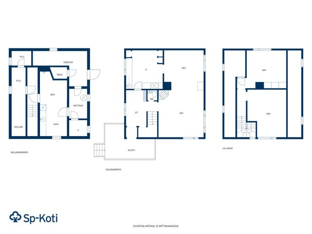 asuink: oh, mh, k, wc, et, kuisti, yläk: 2mh, aula. Kellarik: s, psh, khh, varastotiloja, verstas ( tehty autotallista)