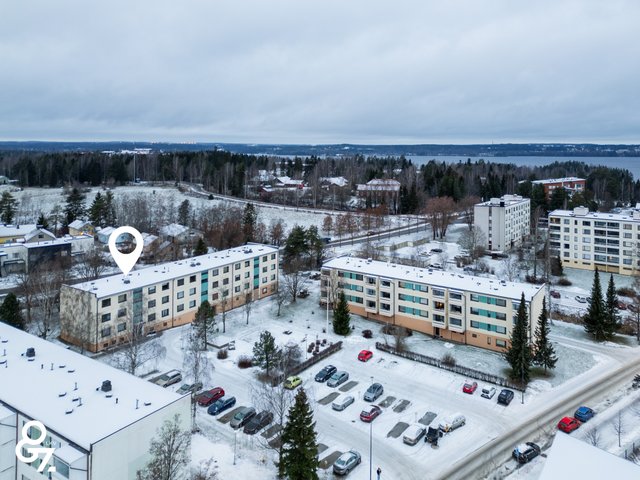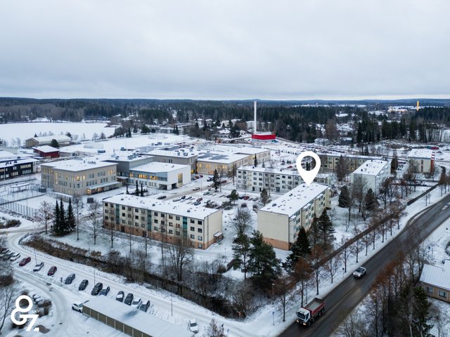 Asunnon sijainti on erinomainen, sillä kaikki palvelut ovat kävelyetäisyydellä. Lähistöllä on koulu, päiväkoti ja monipuoliset ulkoilumahdollisuudet, kuten Vähäjärven ympäristö ja keskusurheilukenttä. Liikenneyhteydet ovat sujuvat ja lähin bussipysäkki on vain 150 metrin päässä. Julkinen liikenne kehittyy ja esimerkiksi ratikkaa on ehdotettu alueelle rakennettavaksi.