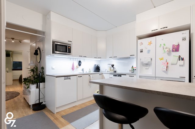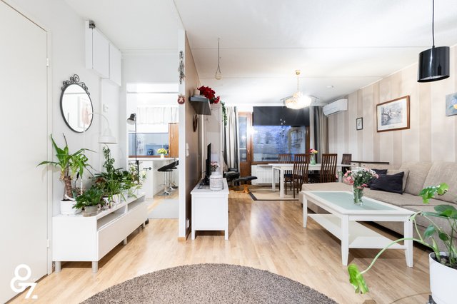 Tässä on tilavassa ylimmän kerroksen läpitalon kolmiossa on viimevuosina tehty isoja remontteja, eikä uusien asukkaiden tarvitsekaan huolia esimerkiksi kylpyhuoneesta, keittiöstä tai ilmalämpöpumpun asentamisesta. Myös taloyhtiössä on isoimmat remontit, kuten LVIS-remontti hoidettu. Asunnon läpitalon pohjaratkaisu ja suuret ikkunat tuovat runsaasti luonnonvaloa sisään, ja lasitettu länsiparveke tarjoaa ihanteellisen paikan nauttia ilta-auringosta.