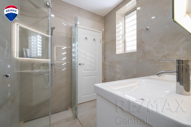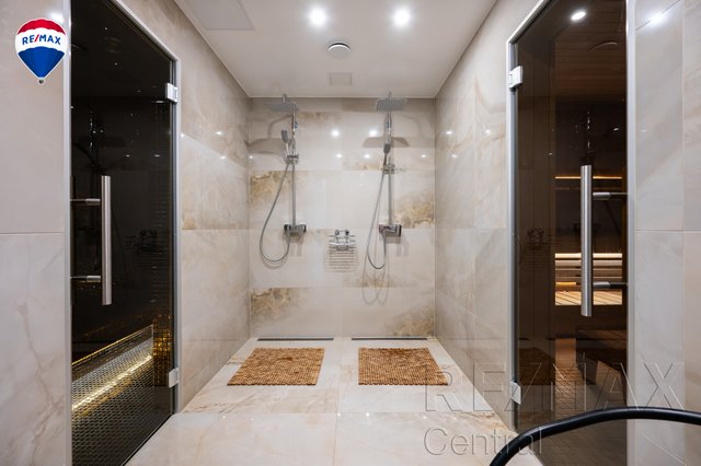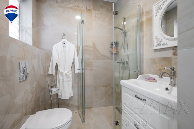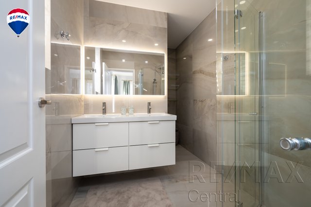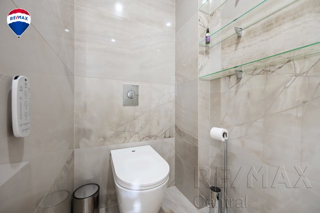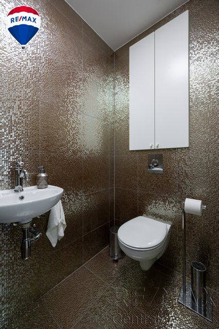 - Suihku, kylpyamme, wc-istuin, pesukone, lattialämmitys, peilikaappi, peili, pesuallas, ja allaskaappi
