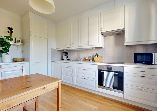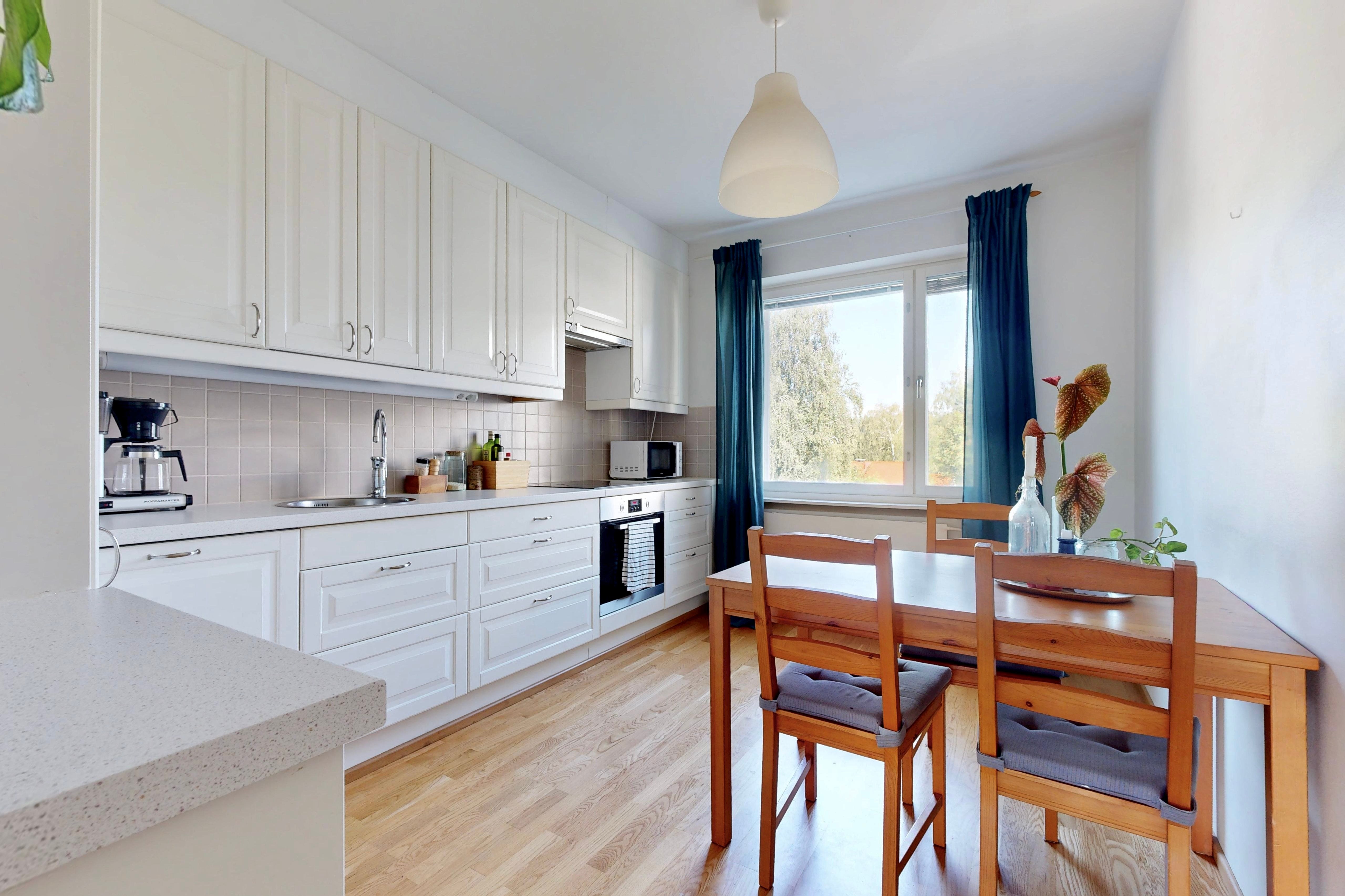 Ihastuttava läpitalon asunto, jossa tilava keittiö ja kylpyhuone. Valoisa olohuone, josta käynti lasitetulle parvekkeelle. Isot ikkunat, jotka tuovat valoa ja avaruutta. Vaalea keittiö, jossa reilusti säilytys-ja laskutilaa.