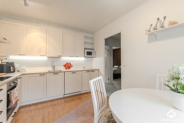 Trivsam och jättefräsch tvårummare ca 60 m2. Ytorna är förnyade och även hela köket har förnyats år 2016. Sommaren 2025 har man installerat en luftvärmepump som ger extra komfort, samt under hösten 2025 har man byggt en helt ny terrass på bakgården.