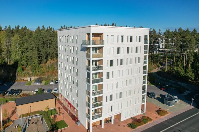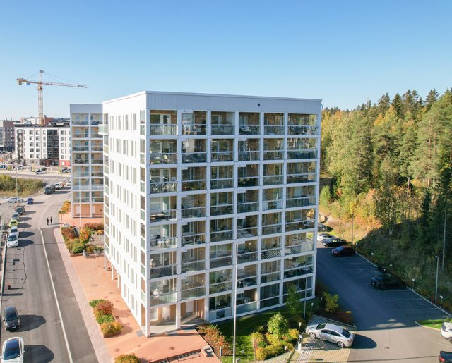 Hoitovastike on tässä 2021 valmistuneessa, maalämmöllä lämpiävässä yhtiössä edullinen ja tonttiosuuskin on lunastettavissa omaksi.