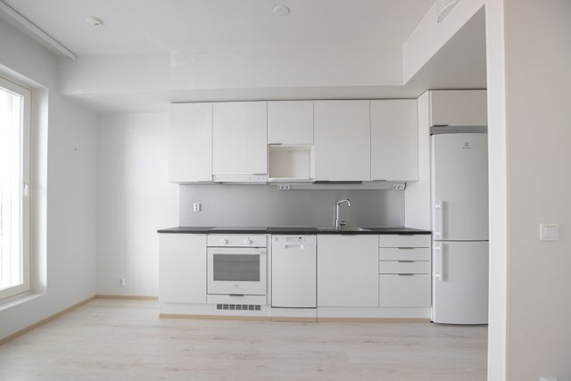 - Jääkaappipakastin, liesituuletin, astianpesukone, erillisuuni, ja liesi