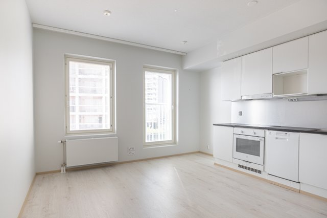 Keittiövarustelu on hyvä, ja kylpyhuone moderni, ja sinne mahtuu kaikki tarpeellinen. Valoisan oleskelutilan kyljessä on pieni alkovi, ja ranskalainen parveke tuo lisää asuinmukavuutta.
