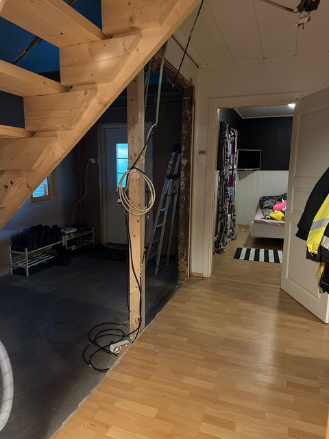 Kodin pohjaratkaisuun kuuluvat eteinen, kolme makuuhuonetta, tupakeittiö/olohuone, vuonna 2020 remontoitu erillinen wc, kylpyhuone ja sauna. Eteistä on aloitettu remontoimaan ja sinne on asennettu lattialämmitys. Ullakkotilaa on n. 30m2 ja tila on keskeneräinen. Pihassa on lisäksi autosuoja, jossa on maapohja.