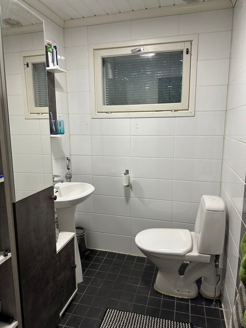 - Kylpyhuone on laattaa, pesukoneliitäntä ja lattialämmitys. Remontoitu 2010-2011. Remontin yhteydessä on käyttövesiputket uusittu.