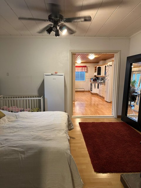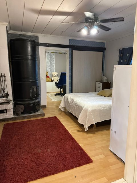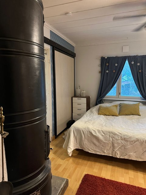 - Yhden makuuhuoneen yhteydessä on pönttöuuni.