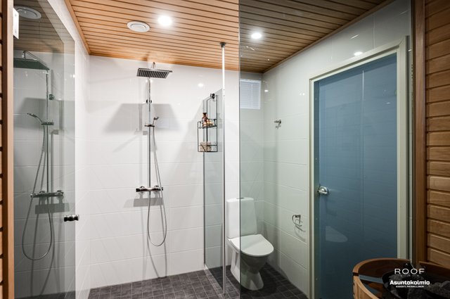- WC-istuin, suihkuseinä, ja suihku (sadesuihku)