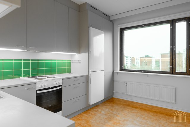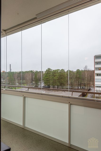 Asunnossa on lasitettu parveke ja viidennen kerroksen maisemat avautuvat upeasti. Talon vieressä on Petreliuksen uimahalli ja lähikauppa Sale on tien toisella puolella. Lenkkimaastot ovat aivan vieressä.