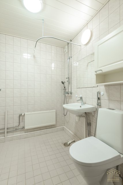 - WC-istuin, suihku, pesuallas, pesukoneliitäntä, peili, kaappi, ja bidee-suihku