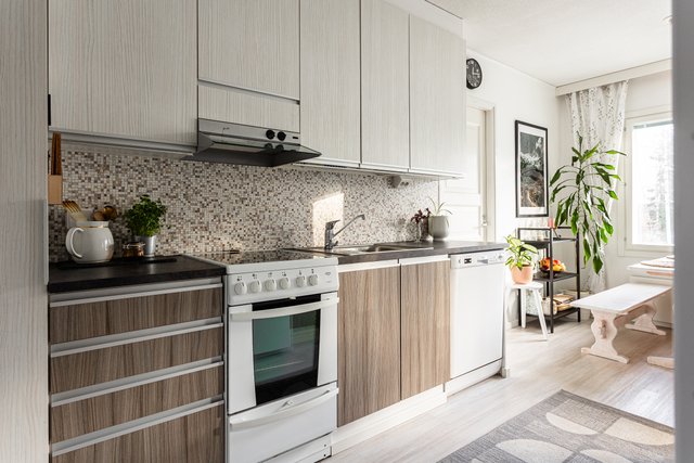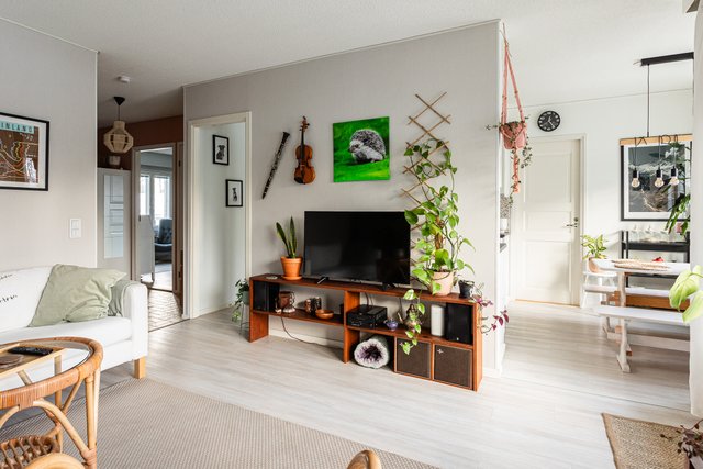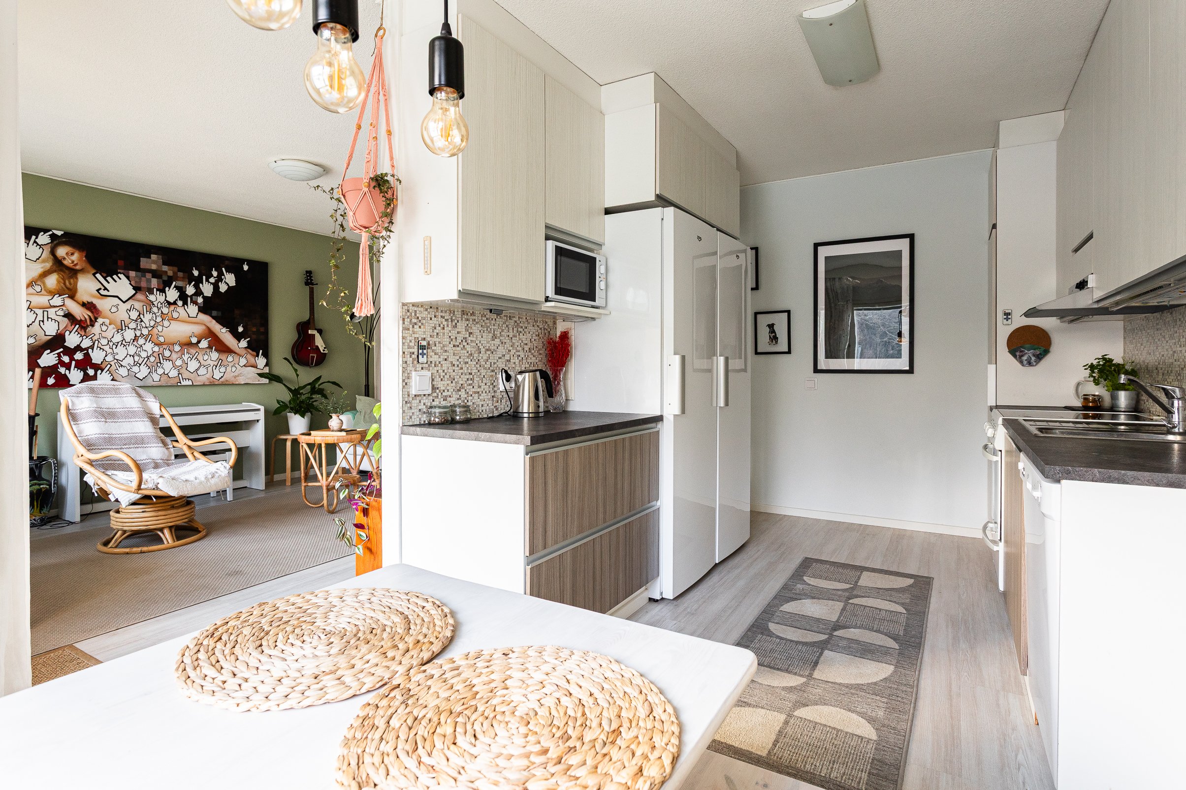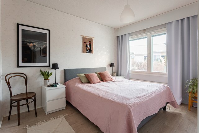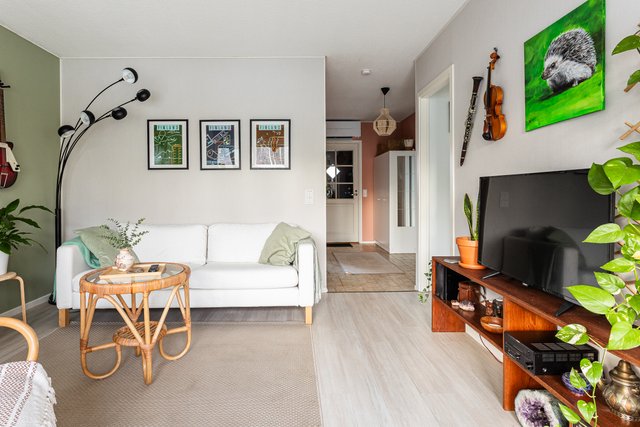 Kodin sydämen muodostavat valoisa olohuone ja käytännöllinen, nykyaikaisilla laitteilla varustettu keittiö – keraaminen liesi ja astianpesukone tekevät ruoanlaitosta sujuvaa. Kaksi makuuhuonetta tarjoavat hyvin tilaa niin perheenjäsenille kuin vieraillekin. Oman saunan pehmeät löylyt tuovat arkeen ripauksen rentoutta.