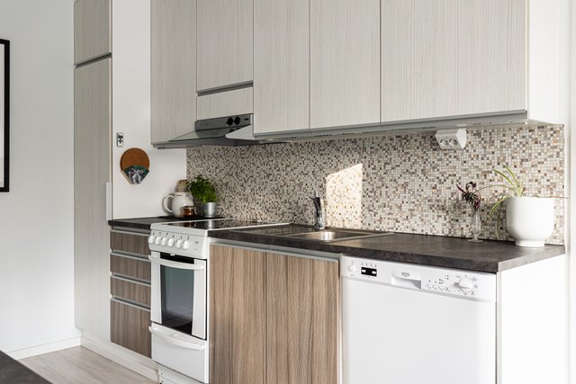 - Jääkaappi, erillinen pakastin, astianpesukone, liesituuletin, ja uuni