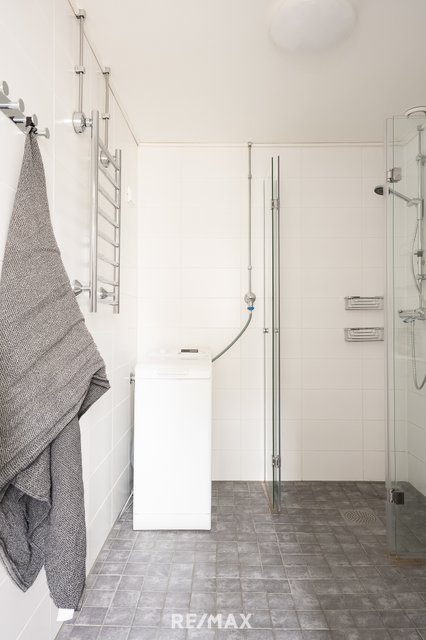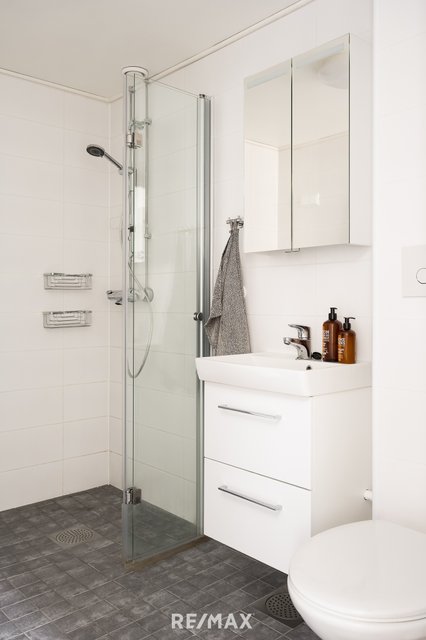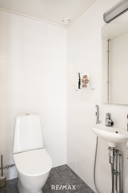 - WC-istuin, suihku, pesukoneliitäntä, suihkuseinä, pyyhekuivain, peilikaappi, allaskaappi, bidee-suihku, ja lattialämmitys