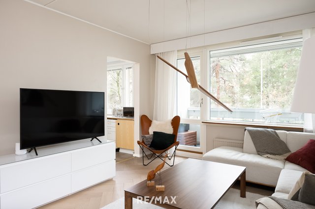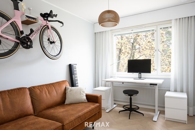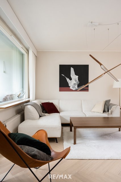 Asunto on hyväkuntoinen kolmen makuuhuoneen koti, jossa on vaatehuone, erillinen wc, kylpyhuone, tilava olohuone sekä länteen avautuva lasitettu parveke. Selkeä ja käytännöllinen pohjaratkaisu tekee kodista viihtyisän niin perheelle kuin pariskunnallekin. Tyylikkäät tammi-kalaruoto-parkettilattiat ja uudistettu keittiön vinyylilattia tuovat kotiin modernia ilmettä ja lämpöä. Lasitettu parveke tarjoaa viihtyisän lisätilan rentoutumiseen – täydellinen paikka ilta-auringon säteistä nauttimiseen.