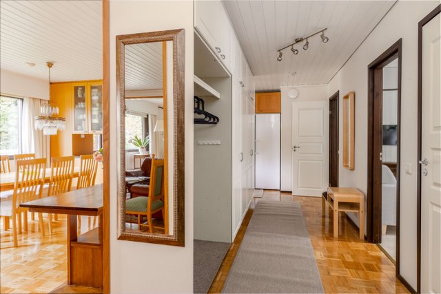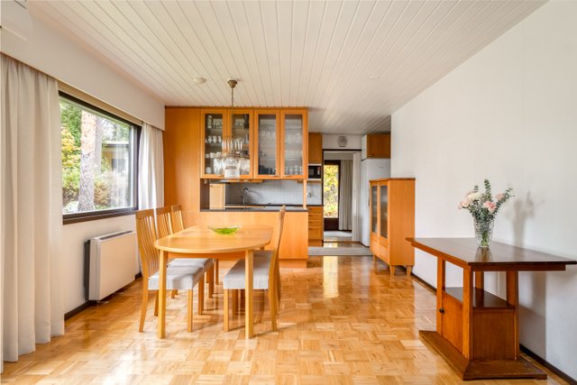 Törmänsilmänkuja 8a tarjoaa tilavan ja valoisan kodin Espoon Viherlaaksossa. Tämä 1,5 kerroksinen omakotitalo sijaitsee vehreällä rinnetontilla rauhallisella asuinalueella, jossa on kuitenkin palvelut lähellä. Päiväkoti, koulu ja puisto ovat kävelyetäisyydellä, mikä tekee tästä kodista ihanteellisen perheille. Lippajärven rantaankin on lyhyt kävelymatka. Aivan taloa vastapäätä sijaitsee Törmänsilmä-niminen lampi ja sitä ympäröivä puistikko, jossa on mukava niin lasten leikkiä kuin vaikkapa ulkoilla koiran kanssa.