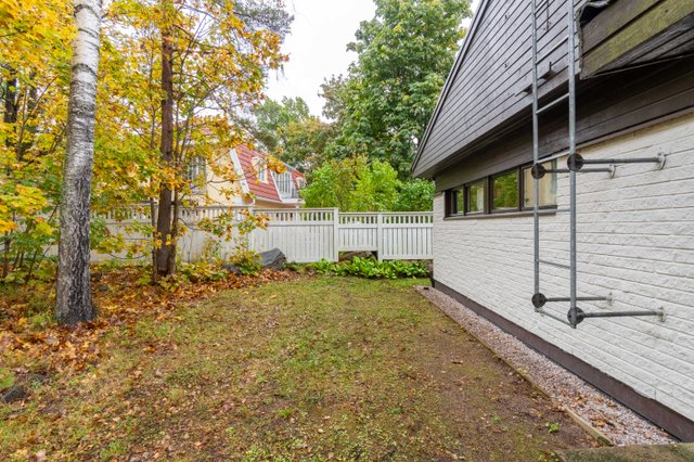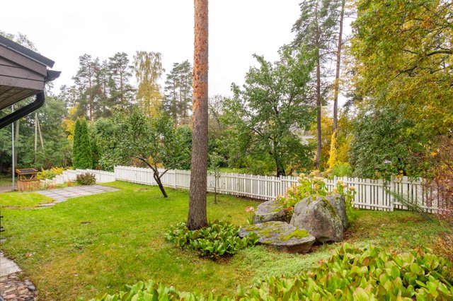- Aiemman rakennuksen kivijalkaa on jäljellä osittain länsipuolella pihanurmen ja terassilaatoituksen alla jatkuen naapuritontin puolelle. Raja-aita on kaakkoiskulmasta oikealla paikallaan, mutta koilliskulmassa aita on 30 cm naapuritontin puolella. Naapurin kanssa on asiasta kirjallinen sopimus. Tontin eteläosaan on lunastettu noin 130m2 määräala Espoon kaupungilta ilman rakennusoikeutta eli kaikki rakennusoikeus on tontilla käytetty.