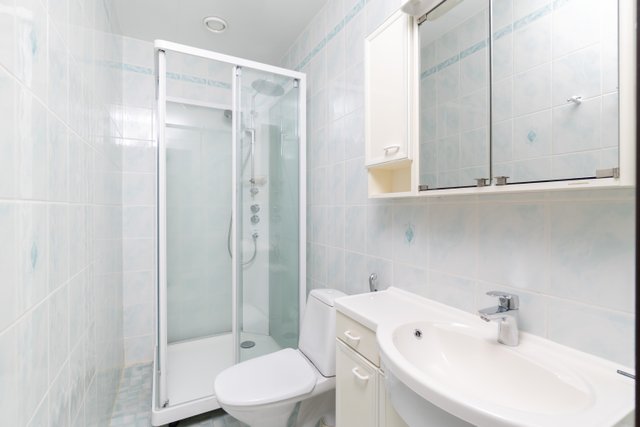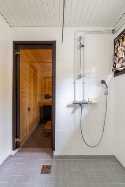 - Yläkerrassa erillinen kylpyhuone, jossa suihkukaappi, lavuaari, wc-pönttö ja bidee-suihku.