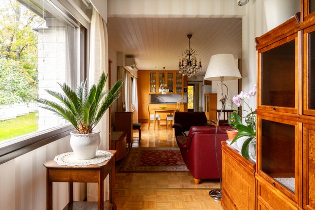 Vuonna 1981 valmistunut talo ja 1995 valmistunut laajennusosa on vuosien varrella pidetty kunnossa ja sen asuintilat tarjoavat monipuoliset mahdollisuudet. Avara olohuone ja avokeittiö muodostavat kodin sydämen, jossa on tilaa niin arkeen kuin juhlaan. Keittiöön tuovat tyyliä ja tunnelmaa kivitasot ja kaapistot massiivitammiovilla. Talossa on runsaasti säilytystilaa kaapistoissa ja vaatehuoneessa sekä alakerran varastoissa.