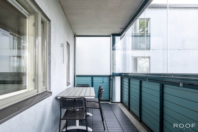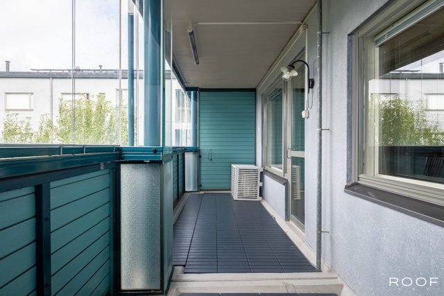 - Olohuoneesta kulku huoneiston levyiselle lasitetulle parvekkeelle ja ilmalämpöpumppu viilennykseen.