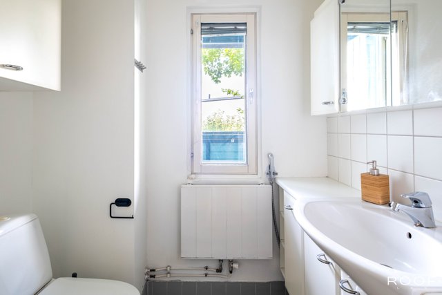 - WC-istuin, suihku, suihkuseinä, lattialämmitys, peilikaappi, pesuallas, ja allaskaappi