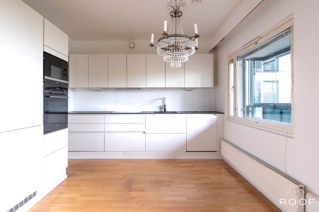 Tervetuloa tutustumaan tähän valoisaan ja tilavaan kotiin, joka yhdistää tilan, mukavuuden ja loistavan sijainnin. Läpitalon huoneisto, jossa luonnonvalo tulvii sisään molemmista suunnista. Asunnossa on koko huoneiston levyinen länsiparveke, jossa voit nauttia ilta-auringosta ja rauhallisista hetkistä vaikka saunan jälkeen. Kodin keskipisteenä toimii kauniisti remontoitu keittiö, joka tarjoaa tyylikkään ja käytännöllisen tilan