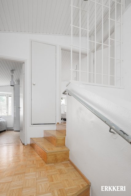 Yläkerrassa on kolme tilavaa makuuhuonetta, joista yhdestä on käynti omalle länsiparvekkeelle.