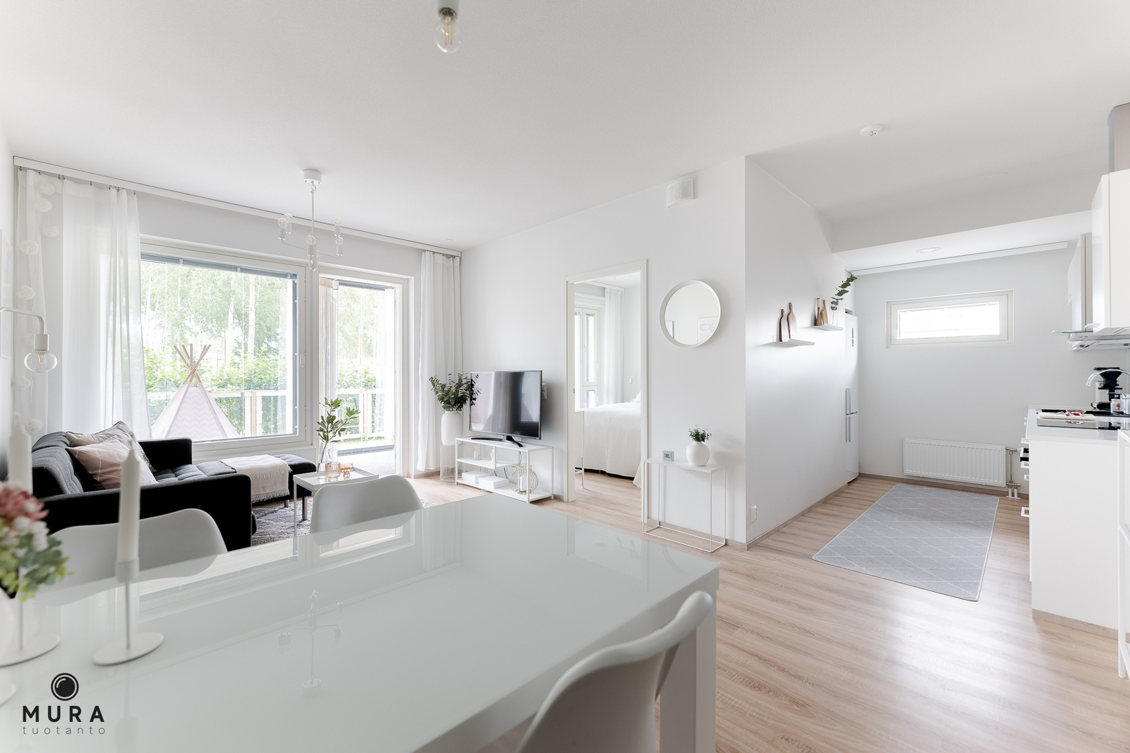 Lähes uudenveroisessa kunnossa oleva asunto on erittäin hyvä kokonaisuus ja tarjoaa muuttovalmiin kodin hyvillä varusteilla. Asunnon pohjaratkaisu on onnistunut ja neliöt on käytetty tehokkaasti. Asuntoon on valittu tyylikkäät ja laadukkaat materiaalit. Olohuoneen jatkeena on koko asunnon levyinen, hulppea lasitettu terassi ja sen jatkona on vielä oma piha-alue. Lasitettu terassi toimii noin 15m2 lisätilana lähes ympäri vuoden.