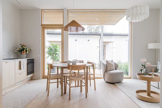 - avara ja valoisa olohuoneen ja ruokailutilan yhdistelmä;