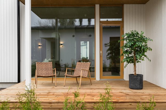 - Terassit ovat kaunista kestopuuta ja lasitettavissa.