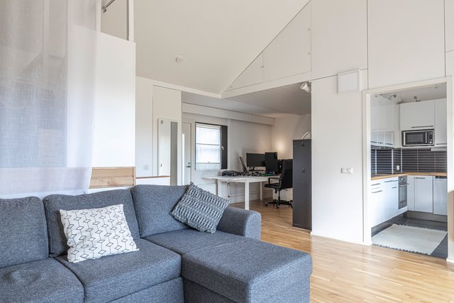 Keittiön vieressä sijaitseva monikäyttöinen tila sopii erinomaisesti työhuoneeksi, lasten leikkitilaksi tai vaikka viihtyisäksi makuualkoviksi – juuri sinun tarpeidesi mukaan. Taloyhtiöstä on myös pidetty hyvää huolta ja korjailtu säännöllisesti mm. ulkokatot, ulko-ovet ja salaojat on uusittu, ja tämän asunnon osalta salaojaremontin laina on jo maksettu pois.