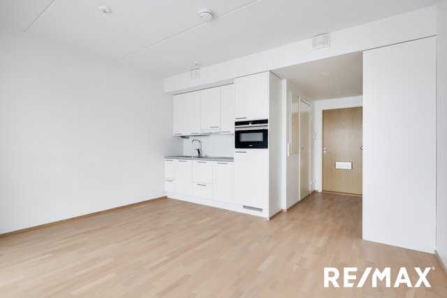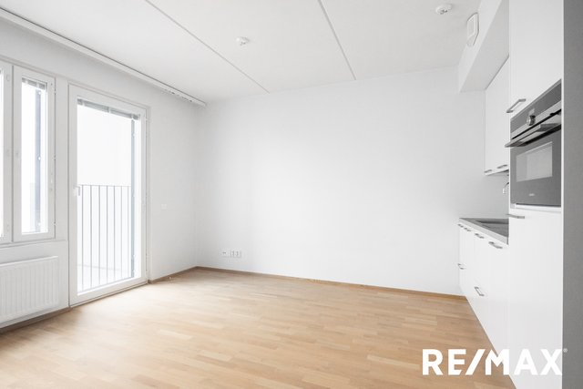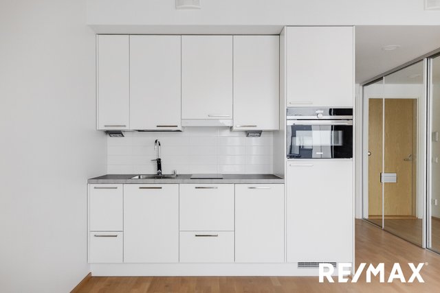 Asunnon avokeittiö on varustettu nykyaikaisilla laitteilla, kuten integroidulla astianpesukoneella ja kiertoilmauunilla. Parvekelattia ja olohuoneen parkettilattia luovat tyylikkään ja yhtenäisen ilmeen. Kylpyhuoneessa mukavuuslattialämmitys ja tilavaraus pesukoneelle tekevät arjesta sujuvaa.