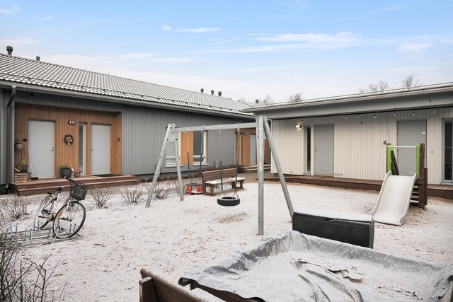 Arkkitehti Pet Michaelin suunnittelema 10 perheen yksitasoiset kodit lämpiää maalämmöllä. Asunnolle kuuluu autokatospaikka ja pistokkeellinen ulkopaikka. Lisäksi ulkorakennuksessa on lämmin varastotila ja asunnon yhteydessä 4 m2 lämmin varastotila, johon on käynti sekä sisältä että ulkoa. Perheen pienimmille löytyy viihtyisä leikkipaikka johon on näköyhteys kodin toisen makuuhuoneen ikkunasta.