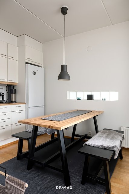 Tämä hissillisen taloyhtiön kolmanteen kerrokseen sijoittuva koti hurmaa toimivalla ja tasapainoisella pohjaratkaisullaan. Neliöt on käytetty tehokkaasti ja tilat asettuvat luontevasti arjen eri tarpeisiin. Keittiö tarjoaa runsaasti kaappitilaa sekä selkeän paikan ruokailuryhmälle. Kahteen suuntaan avautuvat ikkunat tuovat asuntoon miellyttävää luonnonvaloa ja lasitettu parveke lisää asumismukavuutta. Vaaleasävyinen, tilava kylpyhuone ja oma sauna tuovat arkeen ripauksen luksusta ja tarjoavat rentouttavat puitteet kiireisen päivän päätteeksi.