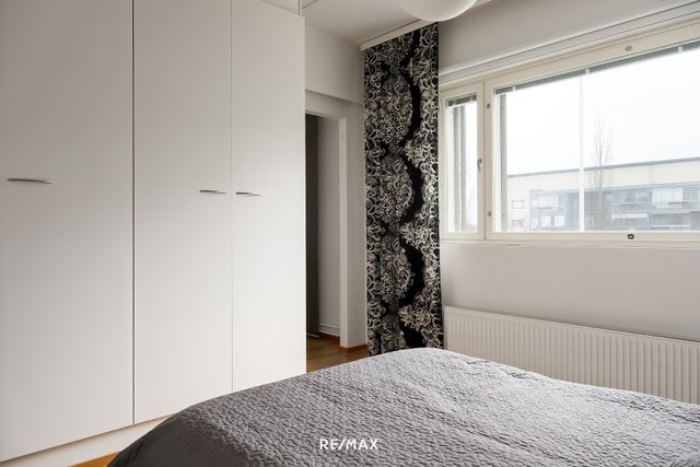 - Tilava makuuhuone, jossa runsaasti kaappitilaa.