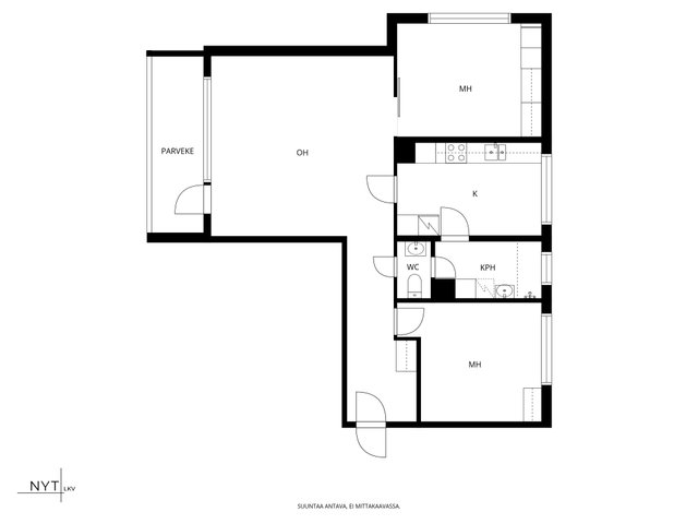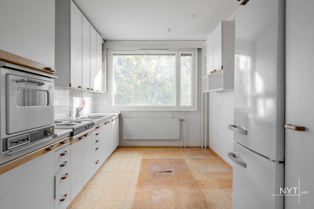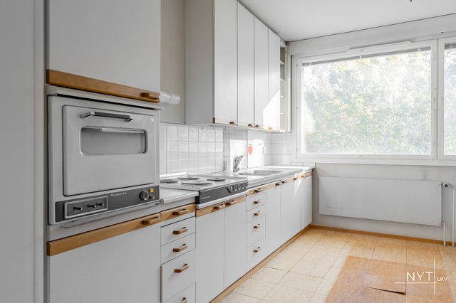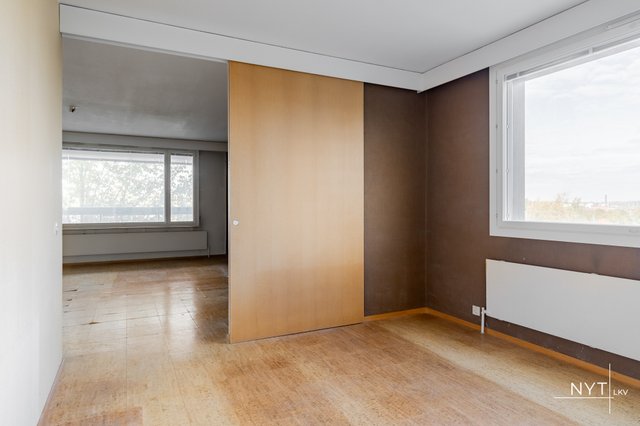 - Ikkunoita kolmeen suuntaan. Olohuone ja parveke länteen. Keittiö ja makuuhuone itään ja toinen makuuhuone pohjoiseen.