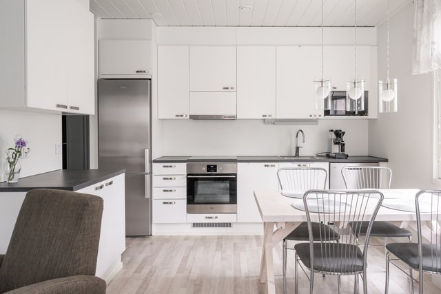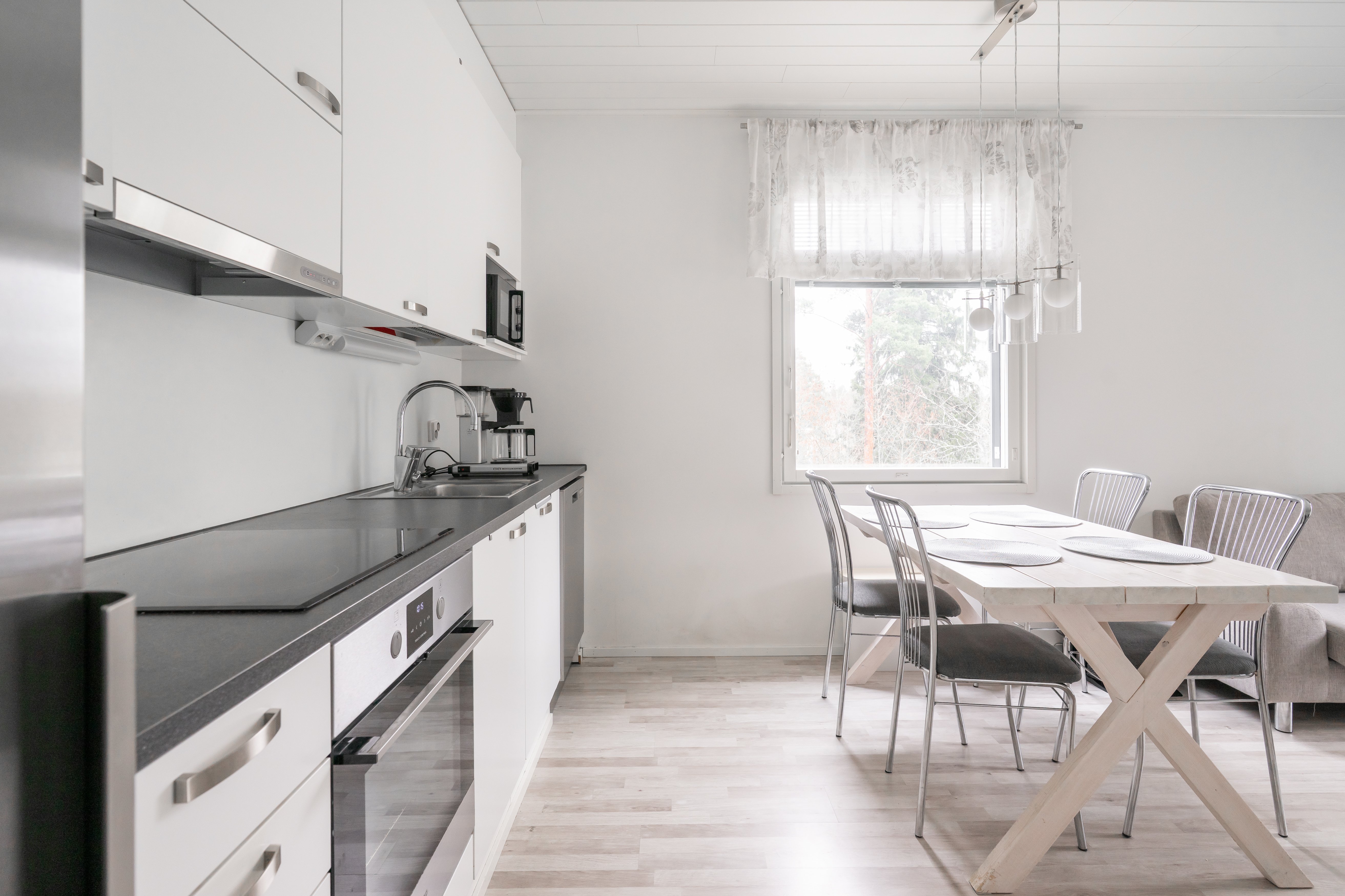 - Jääkaappipakastin, liesituuletin, erillisuuni, liesi, ja astianpesukone