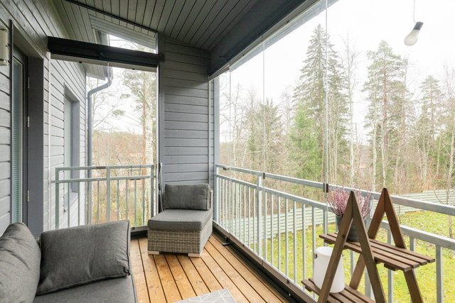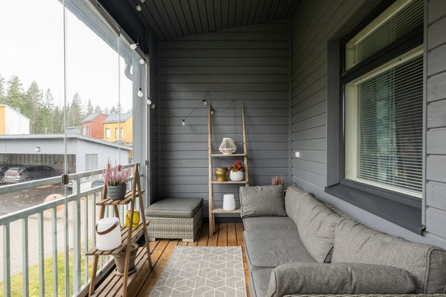 Tämä vuonna 2018 valmistunut koti tarjoaa modernia asumismukavuutta. Asunnossa on kaksi makuuhuonetta, avara olohuone yhdistettynä keittiöön sekä oma sauna. Iso lasitettu parveke tuo lisätilaa varhaisesta keväästä pitkälle syksyyn.