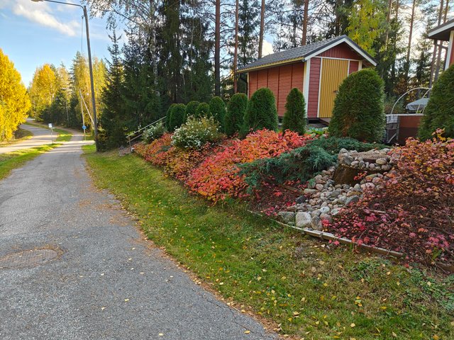 - Loiva rinne talon takana, jossa luonnonmukaista metsäpohjaa.