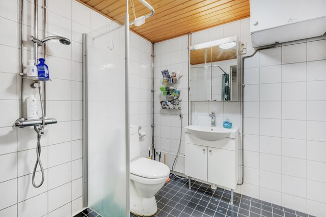 - WC-istuin, bidee-suihku, lattialämmitys, peilikaappi, suihku, pesukoneliitäntä, ja suihkuseinä