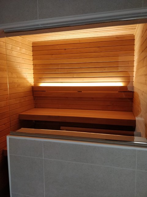 - Upea, valoisa sauna joka on uusittu; Saunan ja pesuhuoneen välille asennettu lasi-ikkuna, saunan ovi uusittu lasioveksi. Saunan panelit ja lauteet uusittu (Tervaleppä). Laadukkaat materiaalit ja kaakeleissa ja laatoissa ajattomat värimaailmat. Täydellisen korjausselostuksen saa välittäjältä.