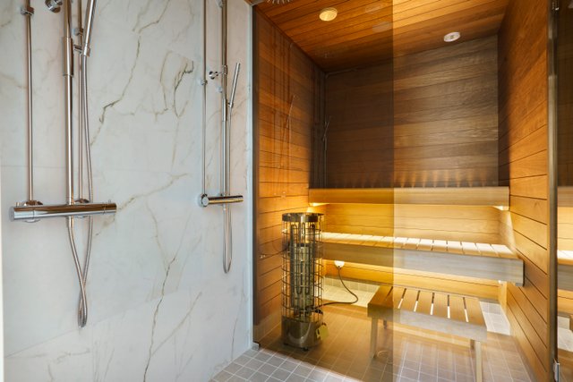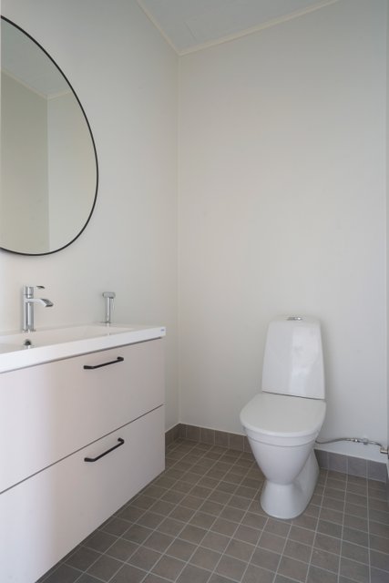 - Suihku, suihkuseinä, lattialämmitys, wc-istuin, pesuallas, ja allaskaappi