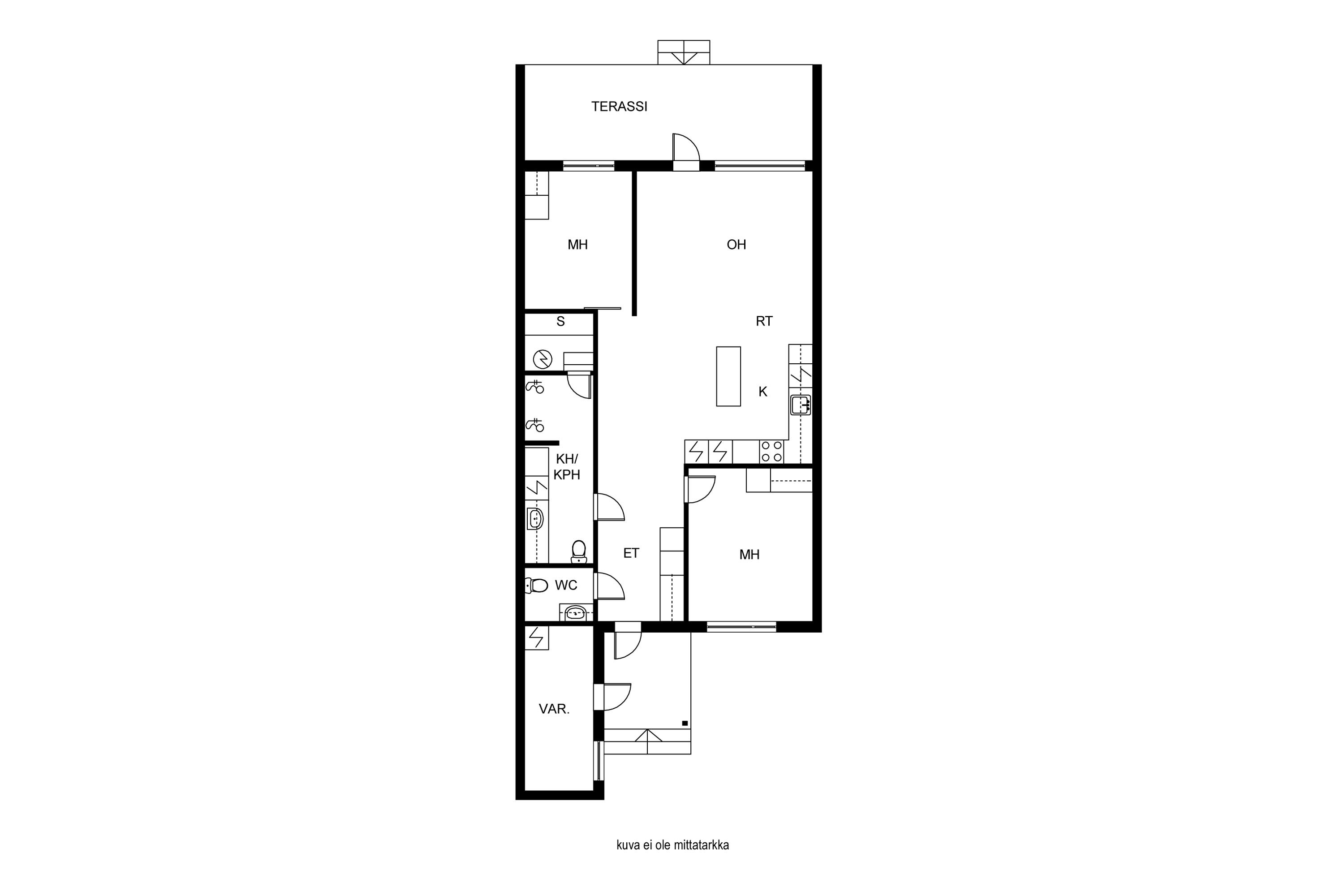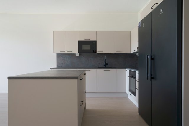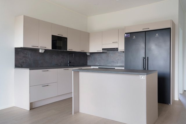 - Jääkaappi, erillinen pakastin, erillisuuni, liesi, liesituuletin, mikroaaltouuni, astianpesukone, ja keittiösaareke