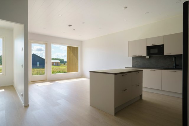 Asunnon avara ja valoisa olohuone yhdistyy saumattomasti hyvin varusteltuun keittiöön, josta löytyy kaikki tarvittava arjen helpottamiseksi, kuten erillinen pakastin, astianpesukone ja induktioliesi. Kaksi makuuhuonetta, joissa kiinteät kaapistot. Lisäksi säilytystilaa on lämpimän ulkovaraston muodossa.