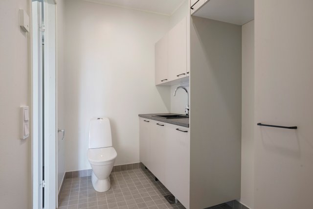 - Pesukoneliitäntä, lattialämmitys, pesuallas, lattiakaivo, pyykkikaapit, pöytätaso, ja tila pesutornille