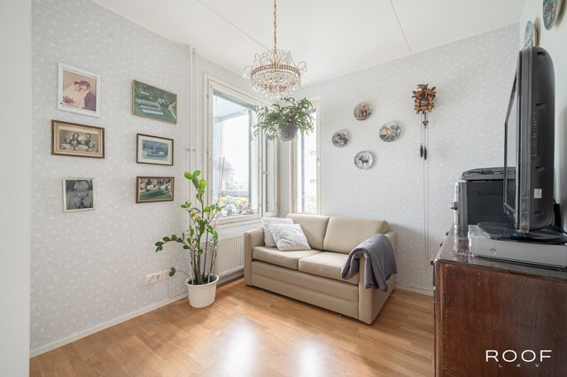 - Kiinteät kaapistot, sälekaihtimet, eteisen naulakko ja kenkäteline, kattoplafondit (3 kpl), parvekkeen kaihtimet, verhokiskot, kahdessa makuuhuoneessa olevat rullaverhot.